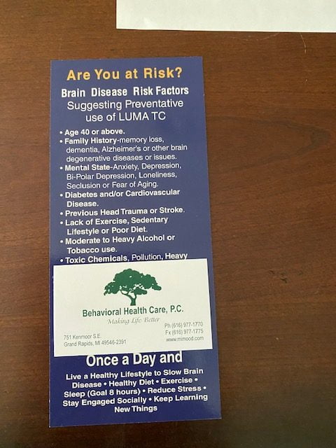 Call us for holistic and comprehensive Brain Health Care under Board Certified Physician supervision at mimood.com
